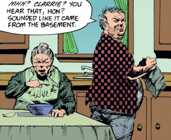 In 1989, Dream learned that Brute and Glob had settled in Jed's mind and came to Barnaby's farm to punish them. Brute briefly considered killing the couple and hiding inside their bodies, impersonating them, but concluded it wouldn't fool Dream.[2] The destruction of the pocket dream dimension that they constructed resulted in such a powerful blast that it killed Barnaby and Clarice.[3]