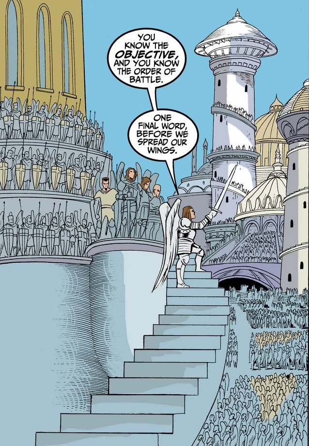 Heaven is a separate dimension which is known as the kingdom of angels. The souls of those who were good in life usually go there. The angels are responsible for protecting heaven, especially its capital, The Silver City.