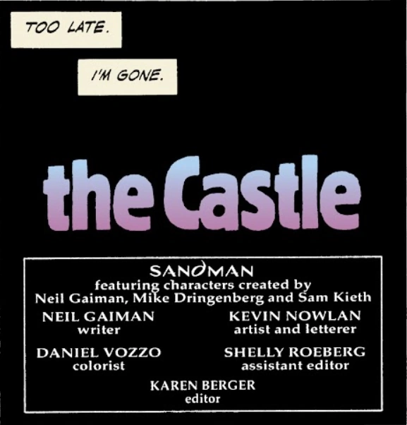 The Castle is a short 8-page story originally released as part of the Vertigo Jam #1 anthology, and later included in collections such as The Kindly Ones and Sandman: Deluxe Edition vol. 4.